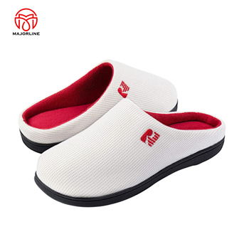 Özelleştirilmiş tasarım OEM bellek köpük waffle pamuklu kumaş nakış logosu terlik TPR taban kemer desteği sıcak kışlık terlik